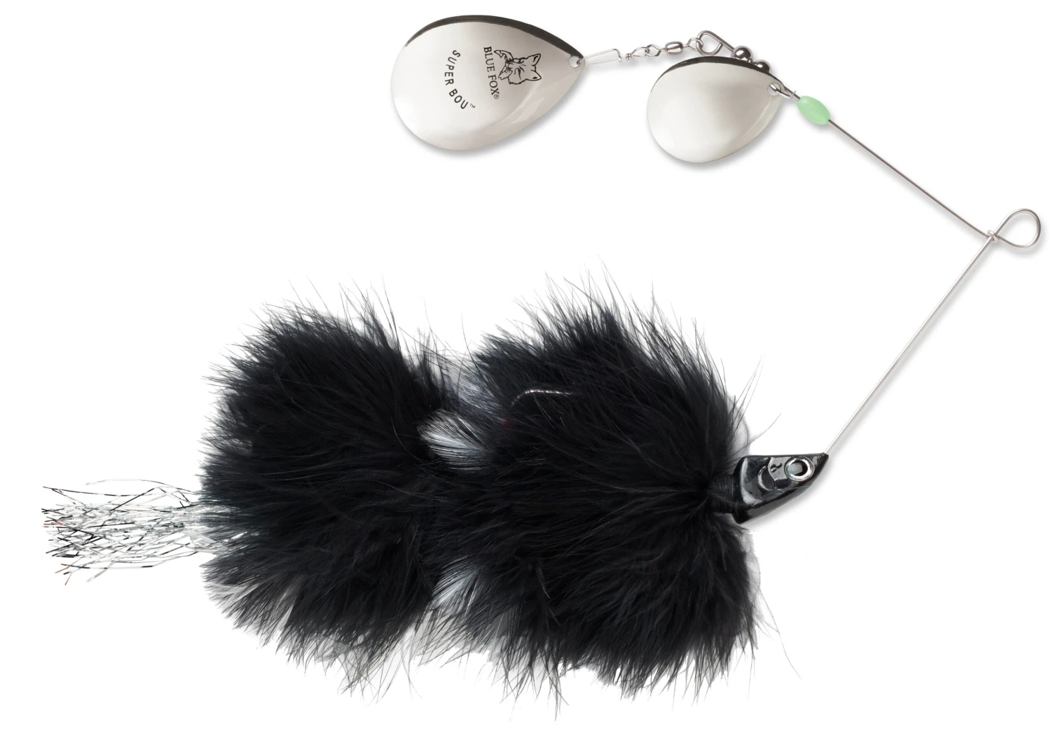 - Blue Fox Super Bou Spinnerbait is a hackle/marabou combo which utilizes twin hard thumping Colorado blades for high lift and flash.