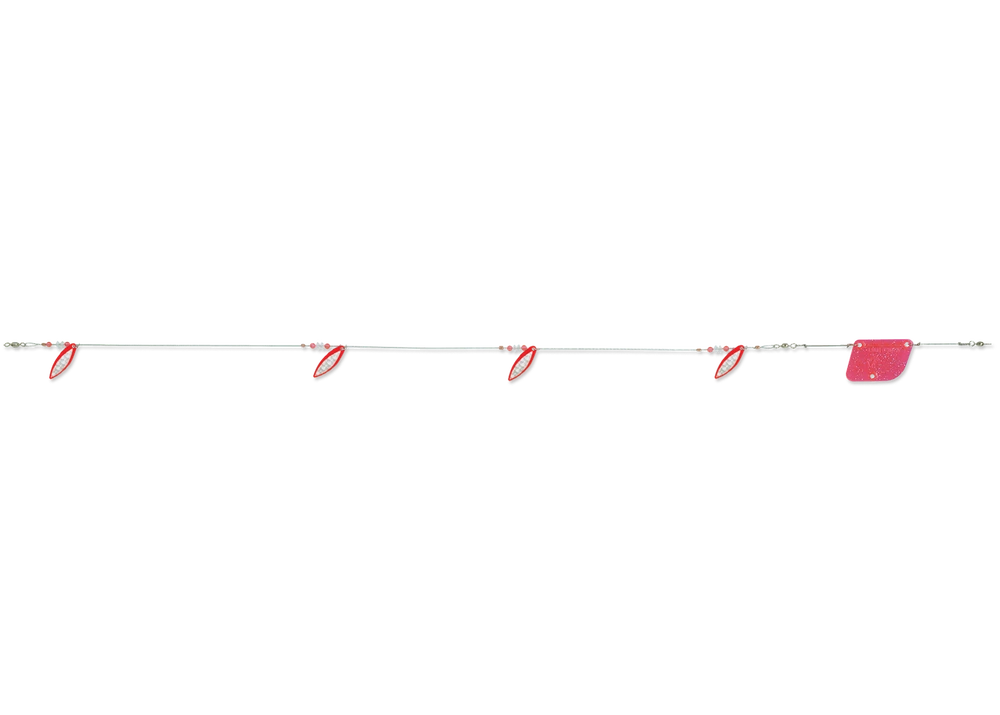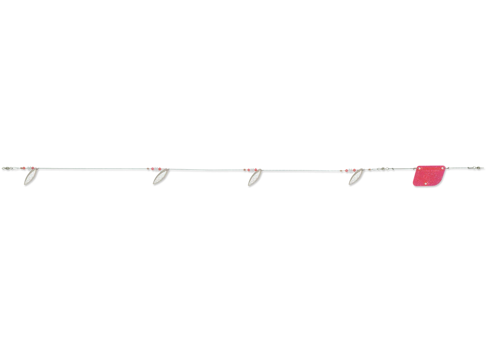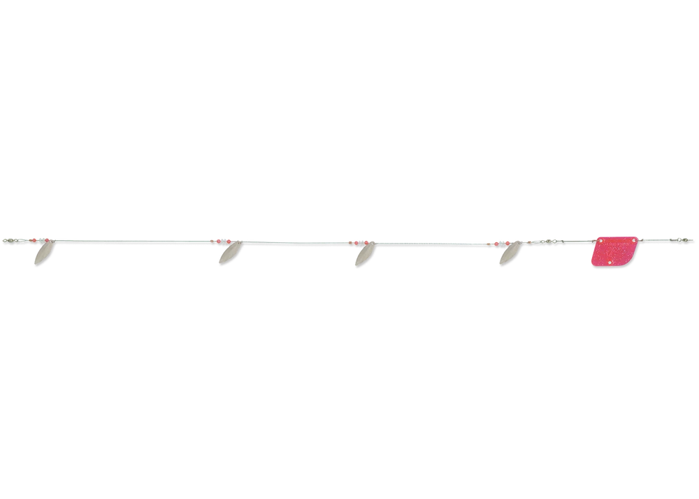 The Luhr-Jensen Kokanee Jeweled Bead Lake Troll is a 28 inch, 4 blade lake trolling rig for kokanee and trout. The easy-pulling design of the Jeweled Bead Troll makes it a great addition to the light-tackle angler’s arsenal. Luhr-Jensen’s premium plating and polishing produces maximum flash from the size 3 blades, simulating a school of small minnows. Four blades are fully rigged on flexible cable rigging and feature jeweled bead spacers for a small shimmering effect that gets noticed. Follow the Jeweled Bead Troll with a Kokanee King or Needlefish tipped with a single piece of shoepeg corn or honey worm for outstanding results on Western kokanee. Available in 5 color combinations.