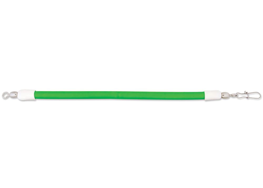 The Luhr-Jensen Medium Flex Salmon Bungee is a 12 inch bungee cord for salmon trolling presentations. Whether you’re using downriggers, trolling divers, or sinkers There is commonly a lot of tension in trolled salmon gear. The Salmon Bungee allows these large fish to naturally mouth trolled baits or lures until they turn, come tight against the fully stretched bungee, and effectively set the hook on themselves. The Salmon Bungee is 12 inches when relaxed, and extends more than double its length to a total of 32 inches at full stretch. Available in Black, Chartreuse, Fire, and Kelly Green colors.