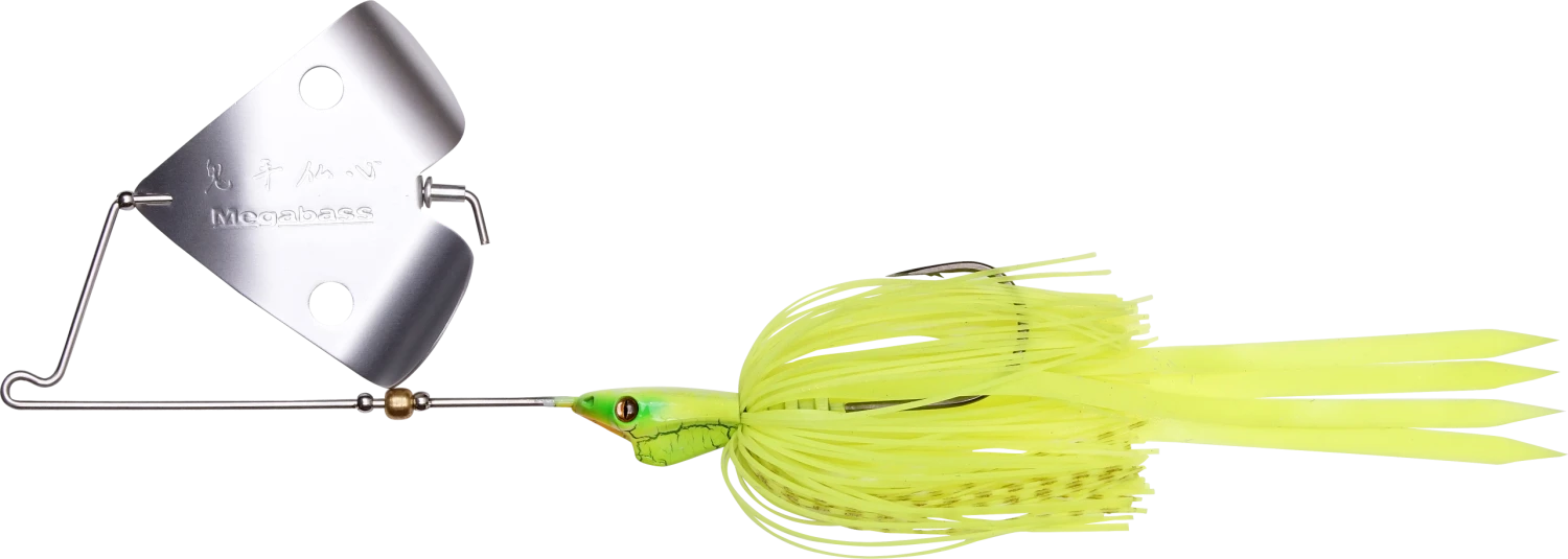 The Megabass Jamaica Boa is a 1/2 ounce wire buzzbait made with thick gauge stainless steel wire and a long silicone skirt. It has a head design that resembles a flat v with a slightly cupped mouth (see image below), which delivers nimble recoveries from deflections and an uncanny bushwhacking ability as it moves through vegetation, which