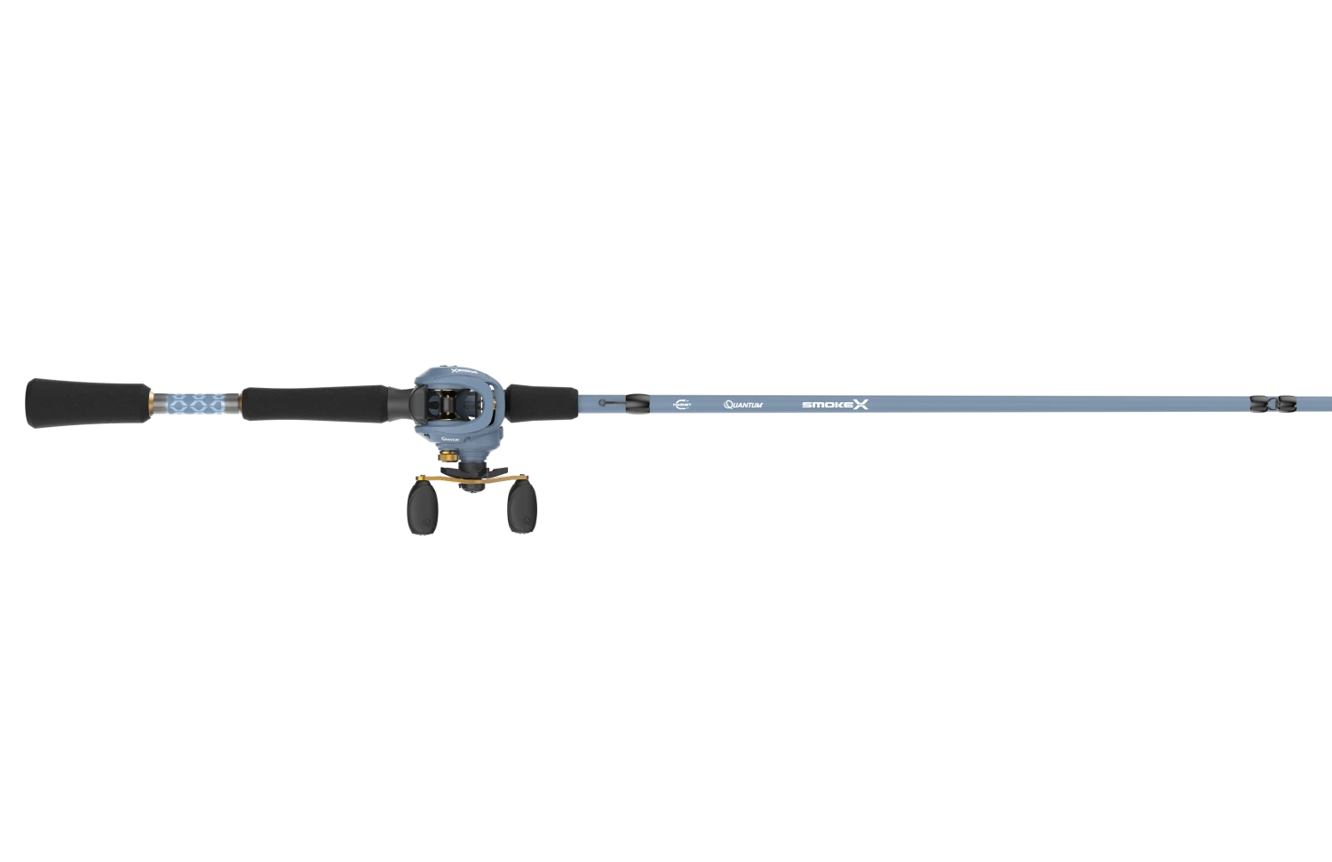 - The Quantum Smoke-X is a 7 foot 2 inch rod and right-hand retrieve baitcasting reel combo optimized for pulling crankbaits and jerkbaits in smoke blue finish.