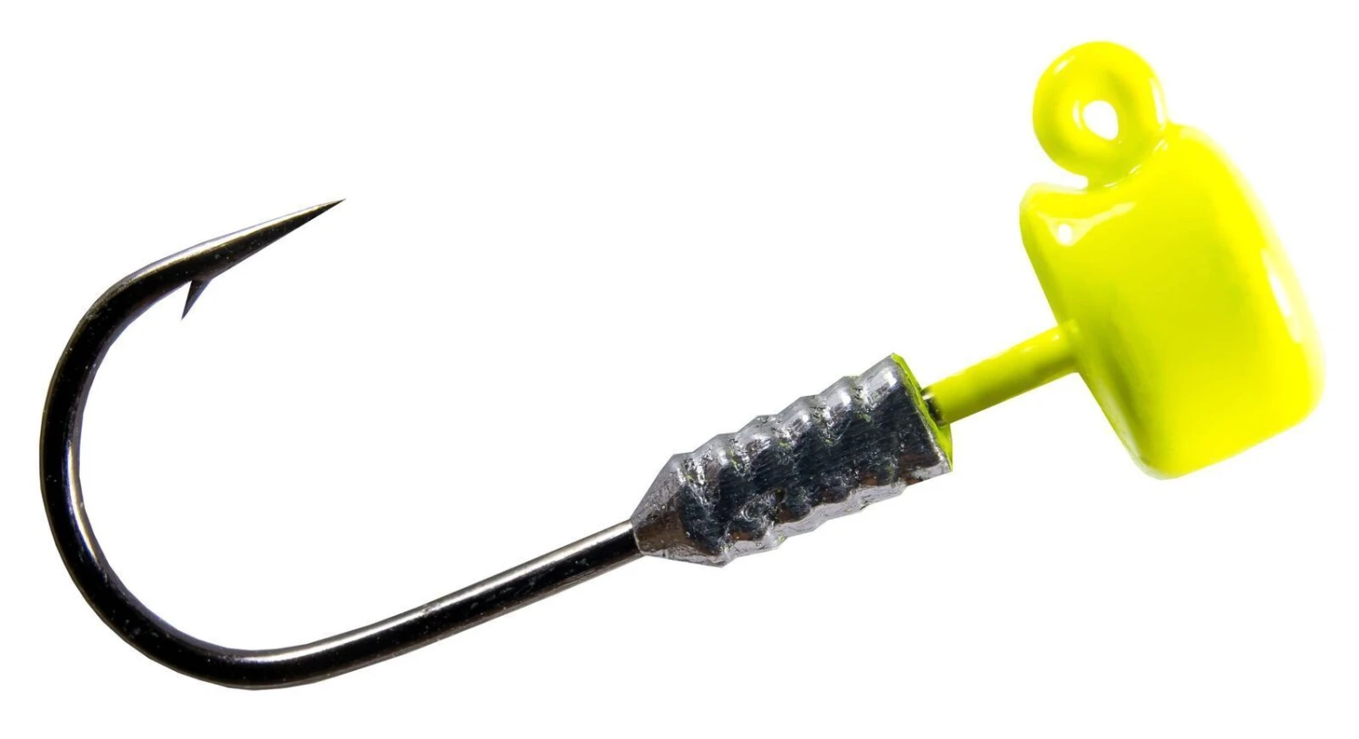 Available in 1/15, 1/10, 1/6, and 1/5 ounce weights in Green Pumpkin, Chartreuse, or Black finishes, 5 jigheads per pack.